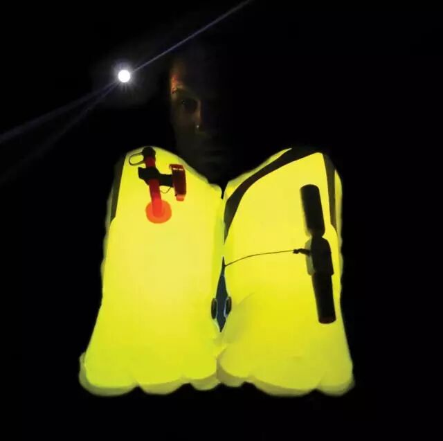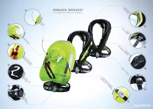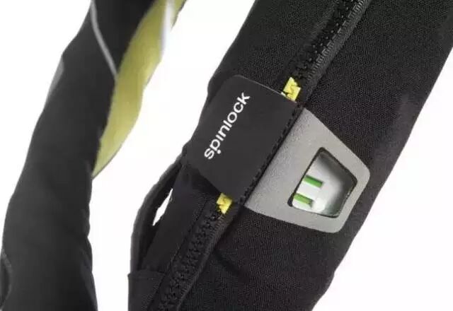 很少救生衣会配置求救信号灯和防溅面罩(但Spinlock的5D系列都有哦!)所以一件好的救生衣还体现在其配置上,还是拿Spinlock 5D救生衣举例(谁让它配置那么全呢?),Spinlock 5D救生衣配备了CO2可更换气瓶、防溅面罩、口哨及吹气管、LED求救信号灯、大腿胯带、D型安全绳挂环、安全绳割刀等。另外Spinlock 2016年推出的救生衣,冲气囊上还配备了Lume-ON闪光灯贴。